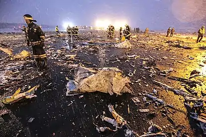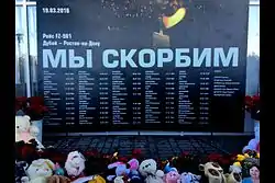 Катастрофа Boeing 737 в Ростове-на-Дону — крупная авиационная катастрофа, произошедшая ночью 19 марта 2016 года. Авиалайнер Boeing 737-8KN авиакомпании Flydubai выполнял регулярный пассажирский рейс FZ981 (позывной — Sky Dubai 981) по маршруту Дубай—Ростов-на-Дону, но в течение 2 часов при сложных погодных условиях пытался два раза совершить заход на посадку в аэропорту Ростова-на-Дону и в итоге после второй неудачной попытки во время набора высоты лайнер начал резкое снижение и на большой скорости рухнул на землю около ВПП аэропорта Ростова-на-Дону и полностью разрушился[1]. Погибли все находившиеся на его борту 62 человека — 55 пассажиров и 7 членов экипажа[2].