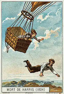 - 25 мая 1824 г. — лейтенант Томас Харрис, изобретатель клапана для выпуска газа из воздушного шара, погиб при падении шарльера из-за неконтролируемой утечки водорода. Его спутница получила тяжёлые травмы, но осталась жива.