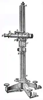 Катетометр — прибор для точного измерения вертикальных расстояний между точками (не обязательно лежащими на одной вертикали) при физических опытах. Катетометр был изобретен французскими физиками Пьером Дюлонгом и Алексисом Пти в 1816 году для измерения разности уровней ртути в сообщающихся сосудах; различные усовершенствования в его устройство были внесены Д. И. Менделеевым[1].