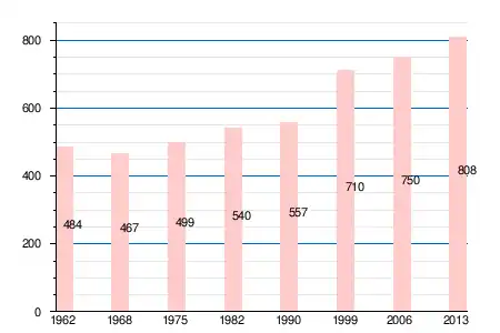 Население коммуны в 2011 году составляло 833 человека[6], в 2012 году — 820 человек[7], а в 2013-м — 808 человек[5].