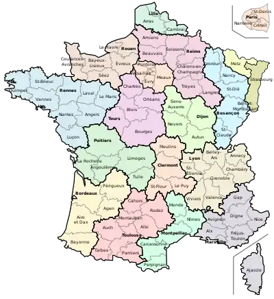 - Митрополия Фор-де-Франса — располагается в Заморском регионе.