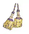 - На левую руку священник надевает манипул, молясь следующим образом: «Да удостоюсь я, о Господь, нести сноп слёз и скорбей, дабы мог я с радостью обрести награду за труды мои».
