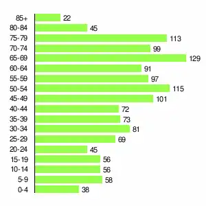| Жителей | 163 | 561 | 1453 | 2185 | 2290 | 2234 | 2045 | 1706 | 1360 |