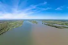 Катунь в нижнем течении, в Смоленском районе в 3 км выше слияния с рекой Бией