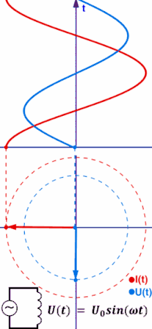 В цепи синусоидального тока ток в катушке по фазе отстаёт от фазы напряжения на ней на π/2.