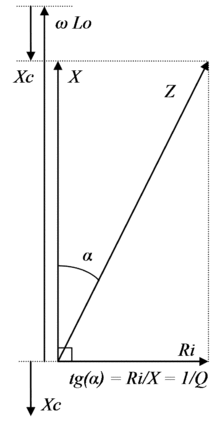 Иногда потери в катушке характеризуют тангенсом угла потерь (величина, обратная добротности) — тангенсом угла сдвига между фазами тока и напряжения катушки в цепи синусоидального сигнала относительно угла — для идеальной катушки.