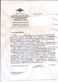 Ответ МВД по заявлениям Бородина В. И. поступил только 2013 году, утверждения последнего не нашли своего подтверждения и были названы голословными.