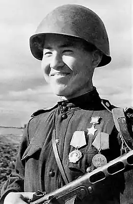- Медаль «Золотая Звезда» (№ 1625) (30.10.1943)[2].