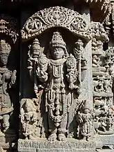 Спутники Вишну: Гада-деви (слева), Чакра-пуруша (справа), Лакшми (внизу)