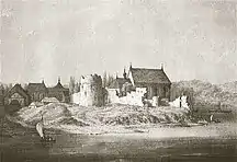 | Каунасский замок в XIX веке. Рисунок Наполеона Орды | Круглая башня и бастион до реконструкции. 2006 год |