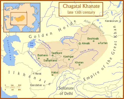 уйгурская письменность (сохранились грамоты, позволяющие сделать вывод об использовании монгольского языка уйгурским письмом на территории Чагатайского улуса) до 1353 года[1], |