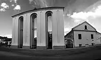 Костёл Святой Троицы сгорел и от него не осталось ничего над поверхностью земли. Однако от комплекса остались колокольня и П-образный дом под названием «монастырь шариток». С колокольней дом соединен аркой. Это двухэтажный дом с двускатной крышей. С северной стороны посередине есть пятигранный ризалит, в стенах которого дубовые перевязи. Всего дом состоит из двух частей: