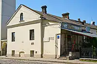 - Левое (западное) крыло — улица Кафедральная, 17 — построено в XV—XVI веках. На северо-западном углу — наклонный четырехгранный ризалит с внутренней комнатой и маленьким окном сверху. В цокольном этаже этой части были найдены элементы, которые позволили сделать вывод, что данная часть здания включает в себя остатки здания XIV—XV веков. Размер использованного кирпича — (29-30) х (8-9) х (14-15) см[7].