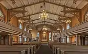 В интерьере собора доминирует алтарь с копией картины Адольфа Тидеманда Воскресение из церкви Брагернес в Драммене, выполненной Кристеном Бруном в 1884 году. Картина имеет неоготическое обрамление в форме портала с фронтоном и шпилем. Под картиной сделана цитата из Евангелия от Иоанна. Витражи в передней части церкви, спроектированные Пером Вигеландом, были установлены в 1961 году. Орган, расположенный в галерее над главным входом, был построен в 1863 году Клаусом Йенсеном и является одним из самых ценных органов того времени в Норвегии[1][5]. Первоначально собор был рассчитан на 984 мест. Чтобы освободить место для столов в задней части церкви в настоящее время количество мест уменьшилось до 618. В 1994 году интерьеры собора окрашены в первоначальный цвет[6].