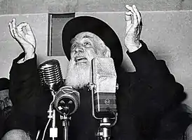 ![]() Во время открытия новой Поневежской иешивы в Бней-Браке. 1953 год. | |