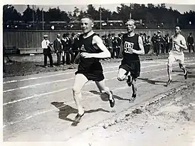 ![]() Кац (справа) на Олимпиаде-1920 бежит вслед за Пааво Нурми и Оскари Риссаненом | |||||||||||