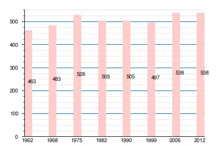 | 1962 | 1968 | 1975 | 1982 | 1990 | 1999 | 2006 | 2007 | 2009 | 2011 | 2012 |