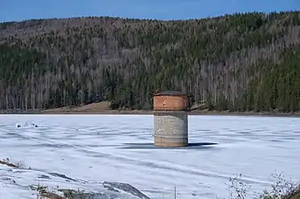 Водосброс, соединяющий городской пруд и отсек осветлённой воды шламохранилища