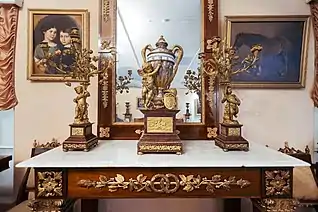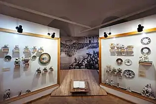 Музей имеет большую коллекцию фарфора. Севрский фарфор соседствует с Мейсенскими изделиями отечественных заводов Кузнецова, Гарднера, Корниловых, Поповых. Здесь можно увидеть уникальные декоративные колонны и столешницу, на фарфоровых медальонах которых французскими художниками Давидом и Гийоном написаны сюжеты, посвящённые Наполеону.[2]