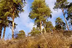 Древостой главным образом одноярусный, разреженный. Преобладает сосна обыкновенная с примесью берёзы повислой, в понижениях растут осина и берёза пушистая. Также в последние годы высажены дуб обыкновенный и ясенелистный клён.