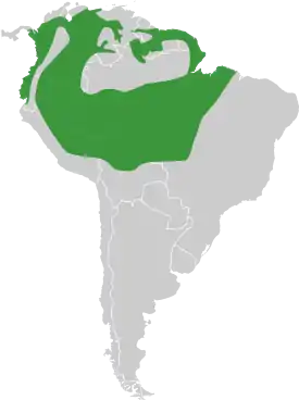 Обитает в Южной Америке от Панамы до бассейна Амазонки (запад и центр Бразилии, север и центр Боливии).