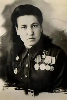 Единственная женщина 39-й гвардейской стрелковой дивизии, удостоившаяся звания Героя Советского Союза. Одна из первых женщин, получивших награду Международного комитета Красного Креста — медаль имени Флоренс Найтингейл, которая присуждается медицинским сёстрам за исключительную преданность своему делу и храбрость при оказании помощи раненым и больным, как в военное, так и в мирное время (1973).