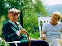 ![]() Клод Каэн с супругой. 1989 год. | |