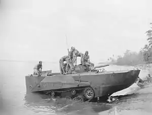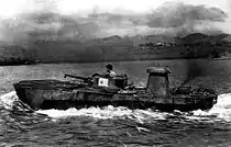 ![]() «Ка-Ми» с установленными понтонами, тестируемый австралийскими солдатами в 1945 году | |