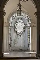 Фонтан во дворе с гербом семьи Реццонико