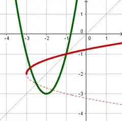 Так как квадратичная функция не является строго монотонной функцией, то она является необратимой. Так как любую непрерывную функцию, однако, можно обратить на её интервалах строгой монотонности, то для любой квадратичной функции существуют две обратные функции, соответствующие двум её интервалам монотонности. Обратными для квадратичной функции на каждом из её интервалов монотонности являются функции арифметического квадратного корня[2].