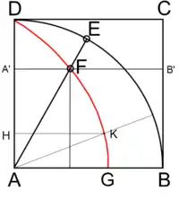 - Точку К построить нельзя, потому что в соответствующий момент времени отрезок и радиус совпадают. В современной терминологии, точка К есть предел точек квадратрисы — понятие, чуждое античной математике.
