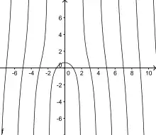 Данная кривая имеет бесконечное число ветвей, для которых вертикальные прямые в особых точках являются асимптотами. Точки кривой с ординатой (за исключением точки на оси ординат) являются точками перегиба[12].
