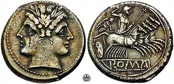 Историки Римской эпохи, такие как Ливий и Плутарх часто ссылаются на ранние монеты, называя их «денариями», но современные нумизматические источники рассматривают их как анонимные римские серебряные монеты, производимые до стандартизации денария незадолго до 211 года до н. э. Название quadrigatus происходит от квадриги с четырьмя лошадьми на реверсе, впервые появившейся на монетах, произведенных для греческих монетных дворов, которые были прототипом для наиболее распространенных рисунков, используемых на римских серебряных монетах в течение следующих 150 лет.