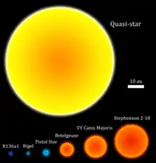 Квазизвезда — гипотетический тип чрезвычайно массивных звёзд, которые могли существовать на очень раннем этапе развития Вселенной. В отличие от современных звёзд, которые светятся за счёт термоядерного синтеза в их ядрах, квазизвёзды получают энергию от излучения, генерируемого материей, попадающей в чёрную дыру[1].