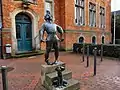 Перед входом в местный отдел налоговой инспекции.Надпись перед фигуркой гласит: «горожанин, заплативший все налоги»