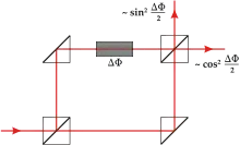 Поэтому можно использовать интерферометр Маха — Цендера для оценки фазового сдвига путём расчёта этих вероятностей[89].