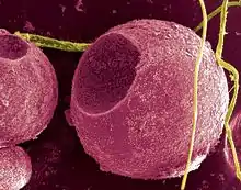 Квантовые точки могут быть различной формы и размера, но чаще всего это сферы диаметром 2—10 нм, и состоят они из 103—105 атомов[1].