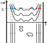 где n = 0, 1, 2…, — эффективная масса квазичастиц (электронов или дырок). Только если заполнен основной уровень размерного квантования (первая подзона размерного квантования) говорят о формировании ДЭГ[6].