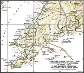 По Портсмутскому мирному договору заключенному после окончания русско-японской войны (1904—1905) Япония заменила Россию в качестве арендатора этой территории. Порт-Артур был переименован японцами в Рёдзюн (Ryojun), а город Дальний — в Дайрен (Dairen).