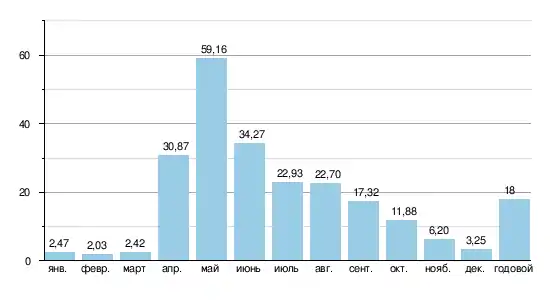 | Расход воды | 18 м³/с (64 км от устья) |