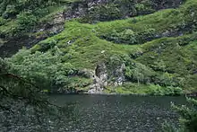 Существует легенда, что святой Лаврентий О’Тул использовал эту пещеру во время своих паломничеств в Глендалох, особенно во время великого поста. Согласно другой легенде, в этой пещере прятался от британских солдат предводитель ирландских повстанцев XVIII века Майкл Дуайер. В настоящее время подход к пещере со стороны горы Лагдаф очень опасен, и во время туристического сезона посетители могут рассматривать вход в пещеру только с озера, подплыв к нему на лодке[7].
