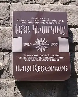 Мемориальная доска в Ереване, ул. Московян, 18.