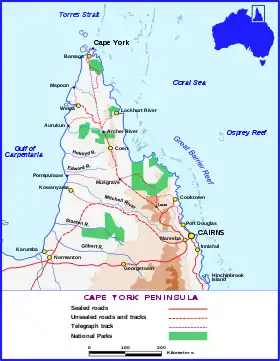 Кейп-Йорк (англ. Cape York Peninsula) — крупный полуостров, расположенный на севере штата Квинсленд в Австралии, между Большим Барьерным рифом в Коралловом море, Торресовом проливом и заливом Карпентария. Этот удалённый полуостров является одним из последних оставшихся неосвоенных районов на Земле.[1] Его не нарушенные человеческой цивилизацией влажные тропические леса и саванны имеют глобальное экологическое значение.[2] Сейчас рассматривается вопрос о включении тропических лесов в список объектов Всемирного наследия.[3]
