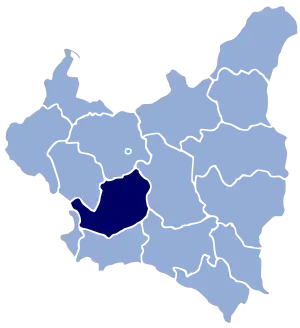 Бендзинский, Влащовский, Енджеёвский, Заверцкий(с 1927 г.), Илжецкий, Келецкий, Козеницкий, Конецкий(до 1939 г.), Мехувский, Олькушский, Опатовский, Опочинский(до 1939 г.), Пинчувский ,Радом(с 1932 г.), Радомский, Сандомирский, Сосновец(с 1928 г.), Стопницкий, Ченстохов(с 1928 г.), Ченстоховский