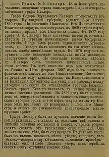 - Келлер, Федор Эдуардович, граф // Военная энциклопедия : [в 18 т.] / под ред. В. Ф. Новицкого … [и др.]. — СПб. ; [М.] : Тип. т-ва И. Д. Сытина, 1911—1915.