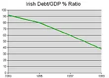 В 1980-е годы Ирландия пережила очередной бюджетный кризис, острота которого вынудила сократить госрасходы в 1987 году (расходы на здравоохранение были урезаны на 6%, на образование — на 7%, ассигнования на сельское хозяйство — на 18%, на дорожное и жилищное строительство — на 11%, а оборонные расходы — на 7%). Бюджет на 1988 год уже предусматривал крупнейшее сокращение государственных расходов в Ирландии за 30 лет[2]. В дальнейшем правительство проводило жесткую бюджетную политику, сохраняя низкие госрасходы. На 2019 год в Ирландии оставались самые низкие государственные расходы в ЕС (как доля от ВВП)[3].