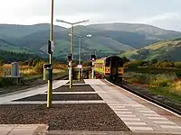 ![]() Дизель-поезд BRC 158 компании «Arriva» на подходе к станции «Лландекуин». | |