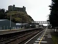 - Харлек — станция находится у подножия холма, на вершине которого возвышается замок Харлек.