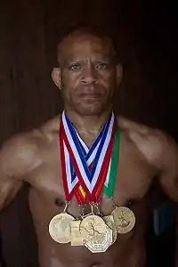 ![]() Лерой Кемп со своими 7 золотыми медалями | |
