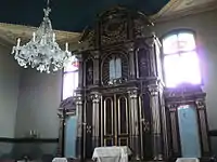 Кенасса в плане имеет форму квадрата, покрыта мансардной крышей польского типа, и венчается прямоугольной башней. Внутри делится на три части: основной зал для мужчин, небольшая прихожая и галерея для женщин, которая покоится на четырех столбах. На восточной стороне расположен гехал (алтарь).